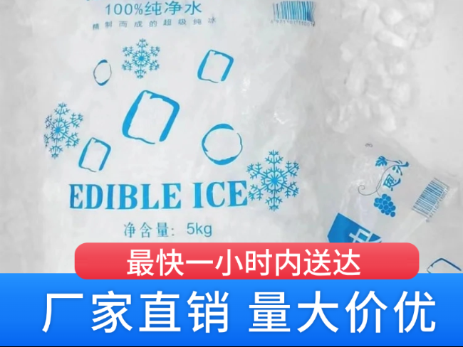 食用冰块:食用冰块每袋有5公斤和10公斤两种规格(可食用)。卫生食用冰粒是消毒食用水在零下20度冷冻而成。